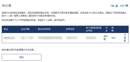 3. EVUS登记成功后,您可以在网页上查看登记状态,如“已登记”、“待处理”或“登记失败”。